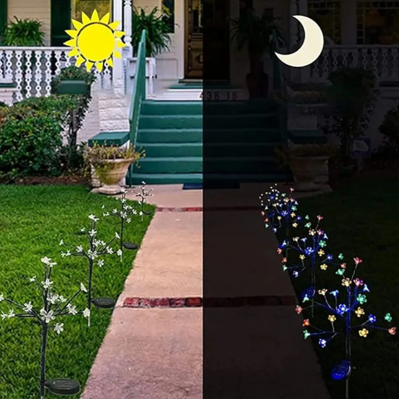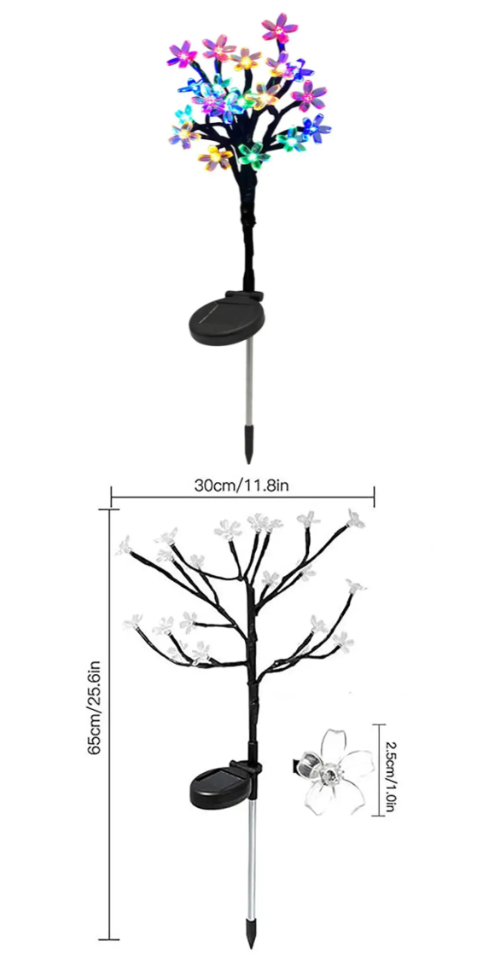 Садовий світильник «Квітка вишні» на сонячній батареї — це стильний декоративний елемент, який перетворить ваш двір, сад або клумбу на затишний і чарівний простір.